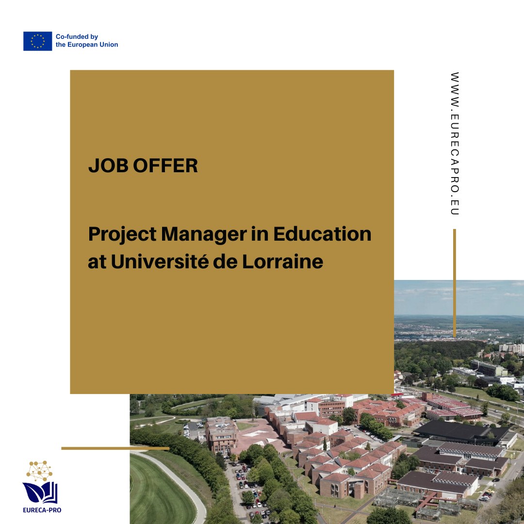 Job offer: Project Manager in Education at Université de Lorraine Employer: Université de Lorraine | Office location: Nancy, FRANCE ✔️Employer: Université de Lorraine – Direction des Relations Internationales et Européennes ✔️Office Location: 91 avenue de la Libération, Nancy, FRANCE ✔️Duration: 36 months ✔️Working time: Full-time ✔️Starting date: as soon as possibe, March 2024 ✔️Job Category: A ✔️Monthly gross salary: according to profile and experience For any enquiries, contact: eurecapro-contact@univ-lorraine.frTo apply, send a CV and a cover letter to: eurecapro-contact@univ-lorraine.frApplication deadline: position opened until filled. Offer publication date: February 15, 2024. Download Job Offer