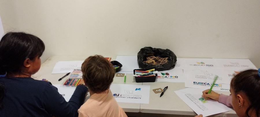 The visitors’ journey through EURECA-PRO’s kiosk concluded with a stop at the “Creative Corner” where they had the chance to stencil EURECA-PRO’s logo on their hands, arms, clothes and sheets of recycled paper, as well as to design and draw their own versions of the logo. Special thanks to the TUC TIE Lab for creating the EURECA-PRO stencils made from responsibly sourced recycled cardboard.