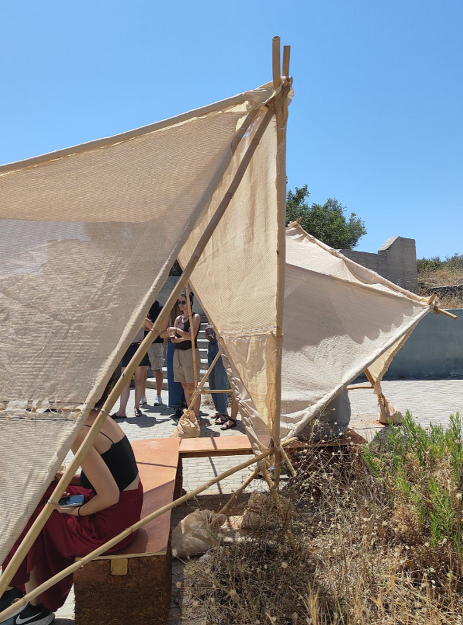 Technical University of Crete integrated the exhibition’s main message and audio piece in the workshops of the School of Architecture, which took place at TUC’s campus and were focused on utilising sustainable materials for small scale experimental constructions.