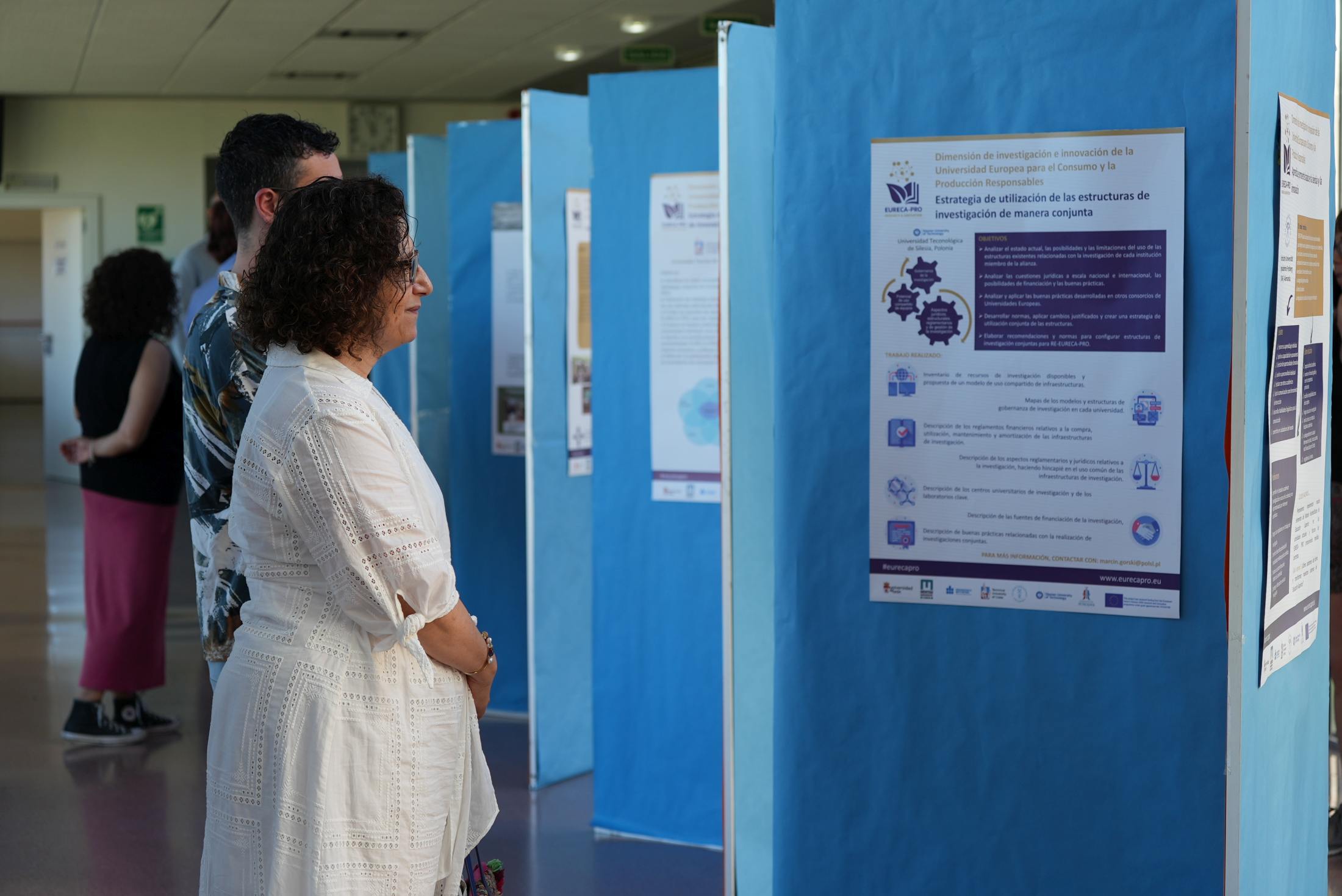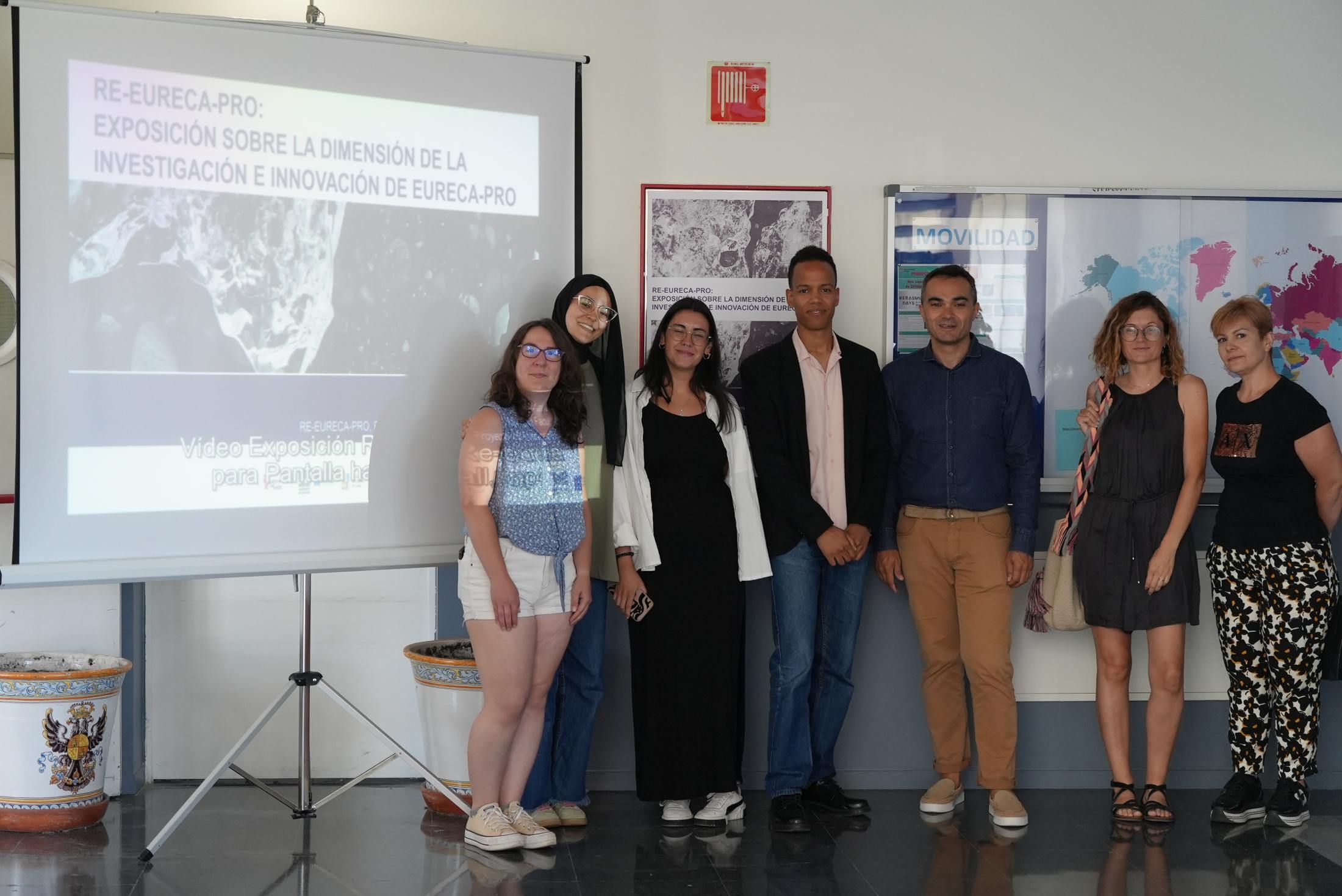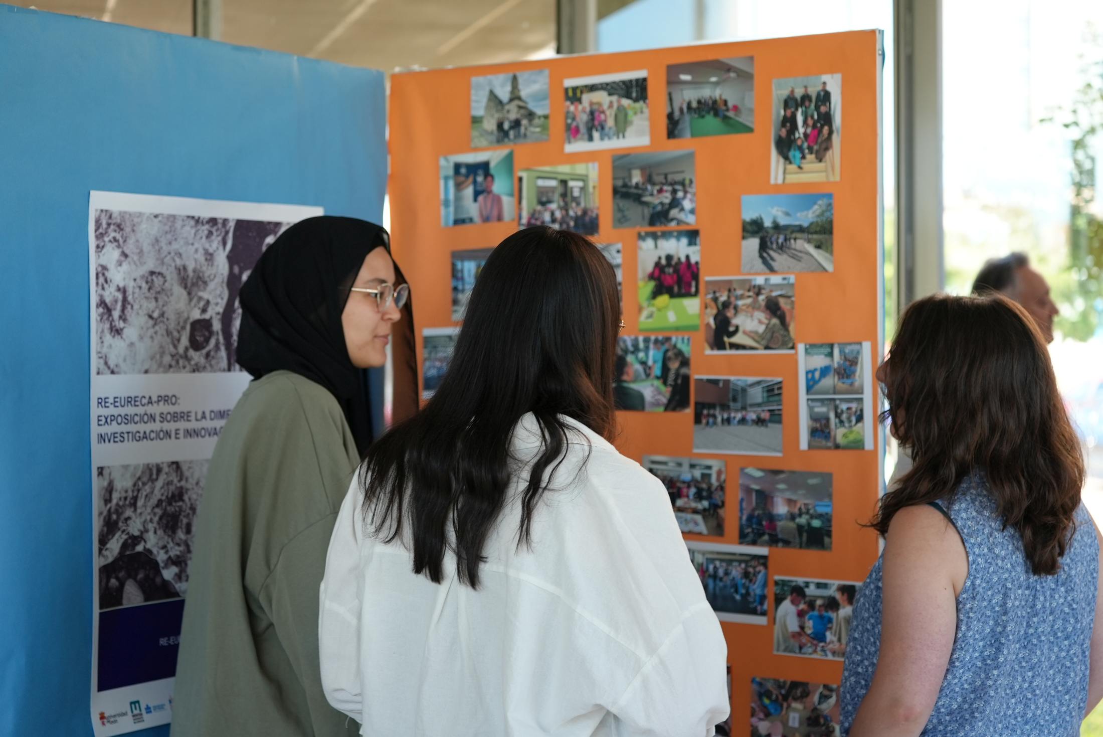 The title of the exhibition at ULE was “RE-EURECA-PRO: Exhibition about the Research and Innovation Dimensions of EURECA-PRO” (“RE-EURECA-PRO: EXPOSICIÓN SOBRE LA DIMENSIÓN DE LA INVESTIGACIÓN E INNOVACIÓN DE EURECA-PRO”) and it was on public display from 4-12 July, 2024 on campus. This timeframe was chosen because it was when the students of the Faculty of Education presented their Bachelor theses. In this way, since the exhibition was staged in the hall of the Faculty of Education, students had the chance to see it.