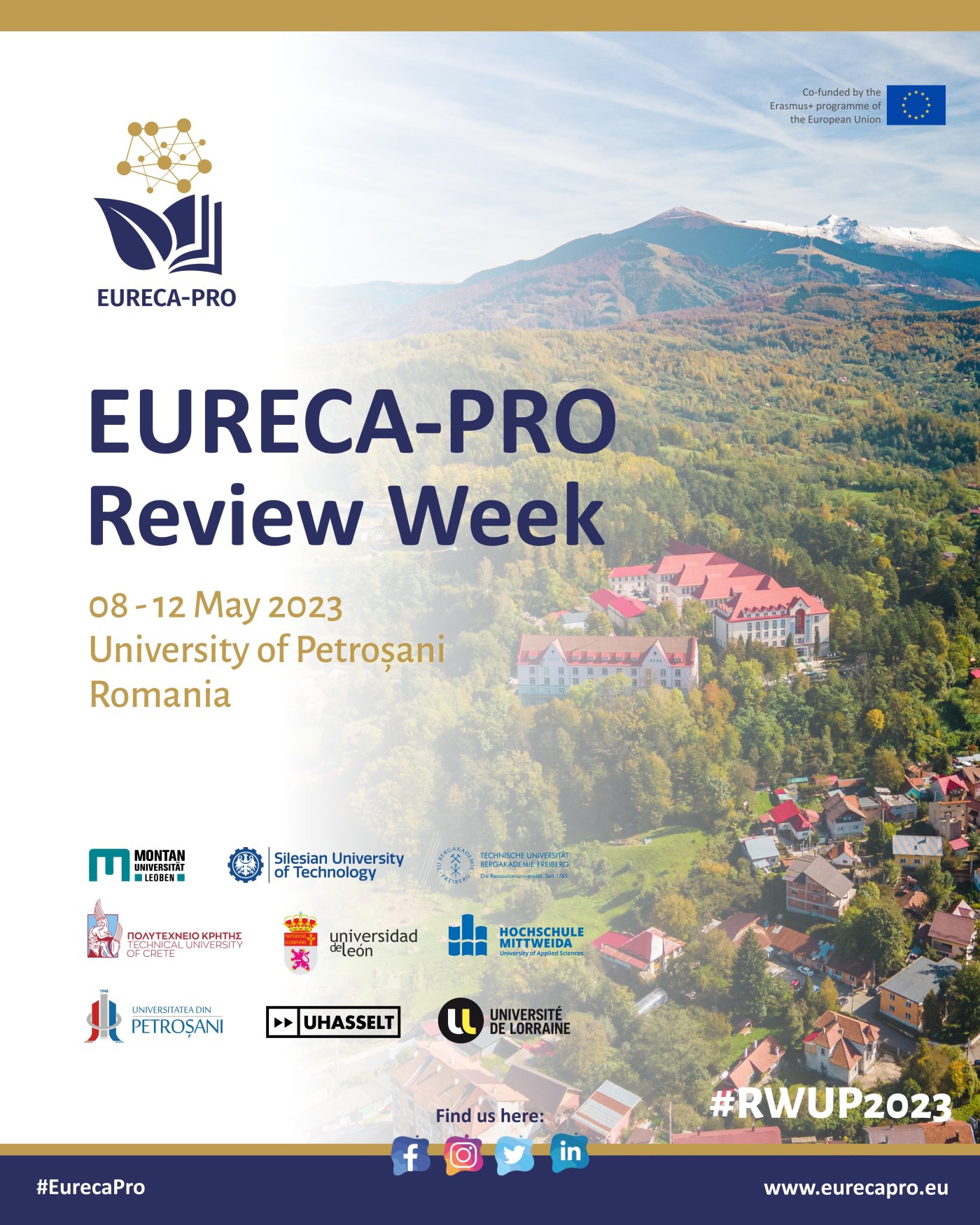 The EURECA-PRO Review Week will be held at the University of Petroșani, Romania, from 8 to 12 May 2023.