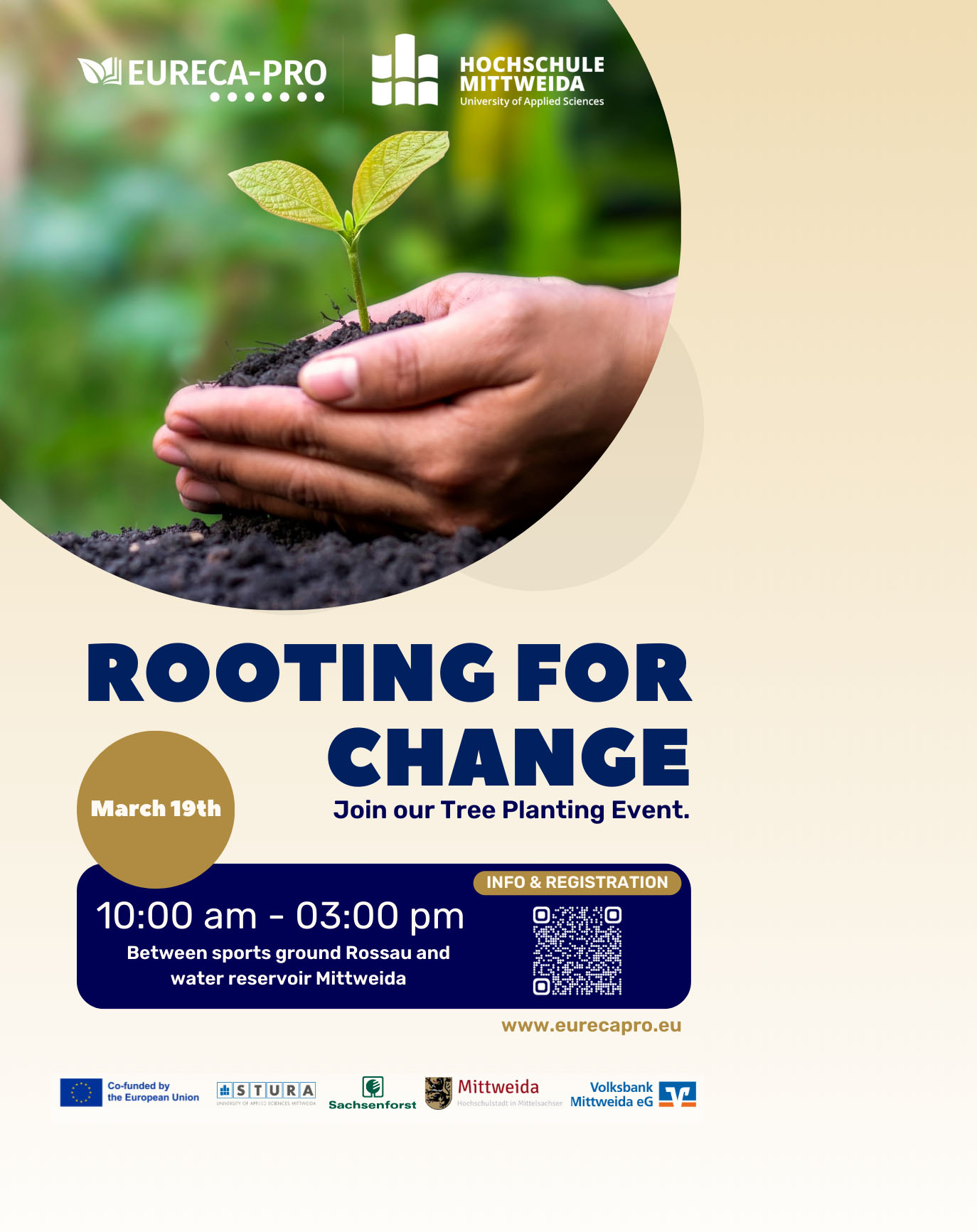 Mittweida University of Applied Sciences is inviting students, staff and lecturers to a joint tree-planting campaign. This campaign aims to actively contribute to environmental protection and bind CO2. This initiative is organized by EURECA-PRO and RE-EURECA-PRO and supported by Volksbank Mittweida and Sachsenforst