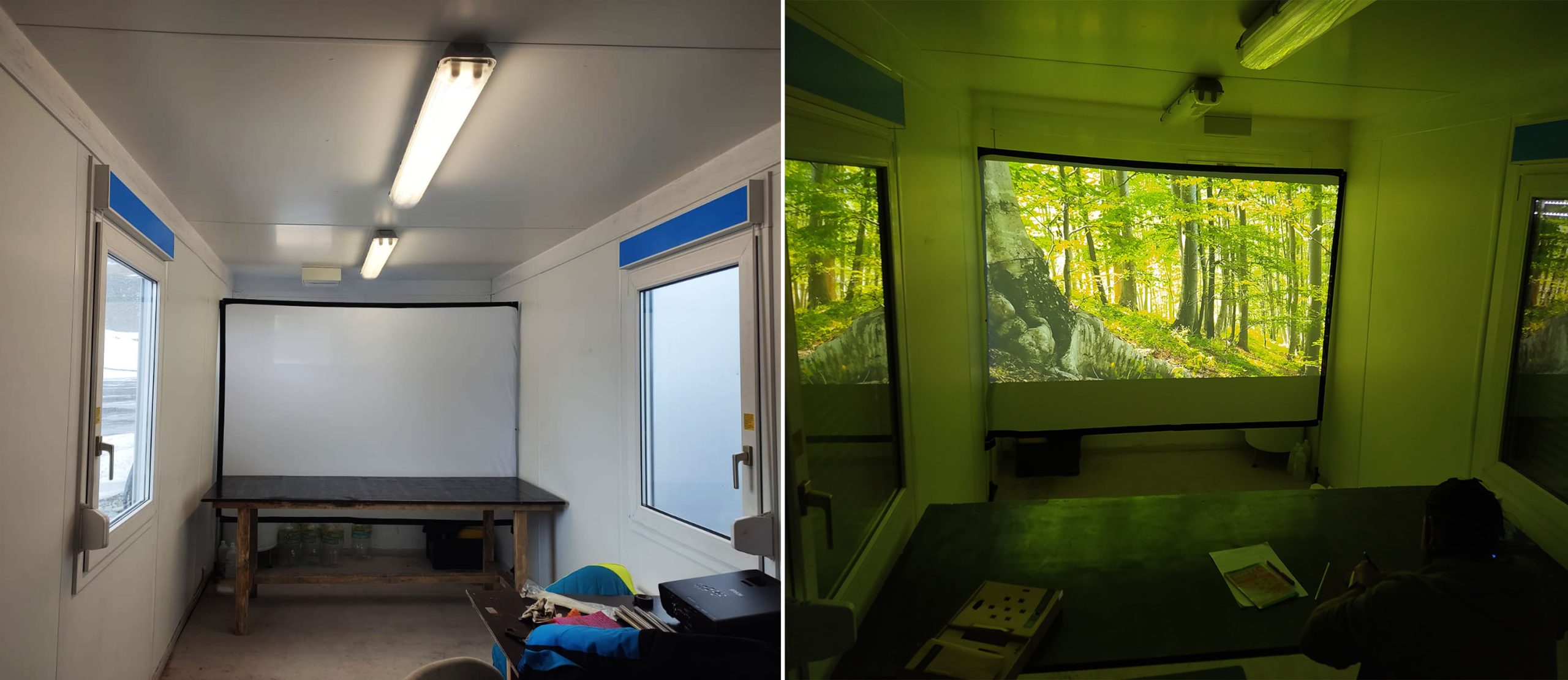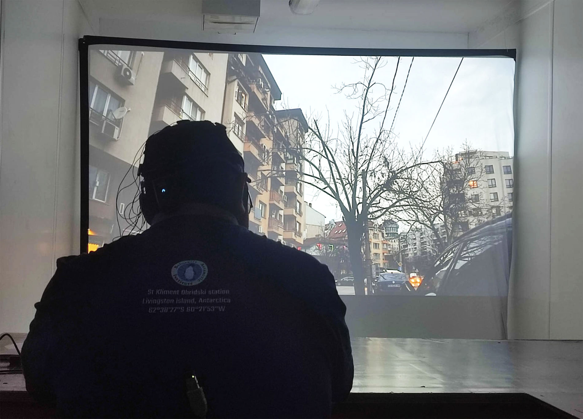 Christina Balomenaki’s experiment was entitled “Audio-Visual System to Mitigate the Negative Effects on Stress and Depression in Confined Spaces and Extreme Environments” and stemed from the field of neuro-architecture. In extreme environments, such as that of Antarctica, this research direction is particularly important as it is crucial to maintain the psychological stability of the people participating in the expeditions, both for their safety and for the success of the mission in general. In this research project, the primary goal of the experiment is to enhance the psychological and emotional well-being of people who stay in isolation for prolonged periods of time. This can be achieved by mitigating the detrimental effects commonly associated with long-term residence in such environments, like mild depression, anxiety, monotony and reduced productivity. Christina’s experiment implemented special techniques with customized environmental projections, combined with visual and auditory stimuli. The tools employed belong to two main categories: a) digital multimedia systems for processing images and videos, even in real time, and b) equipment for collecting data from brain activity through electroencephalographs (EEG) and for measuring biometric data through wearable devices that record stress. The data collected is not subjectively influenced by the participant, thus ensuring objectivity in the analysis. At the same time, content is produced through a methodology that applies specific protocols to avoid overlapping factors, allowing for the detection of the dominant influence factor.