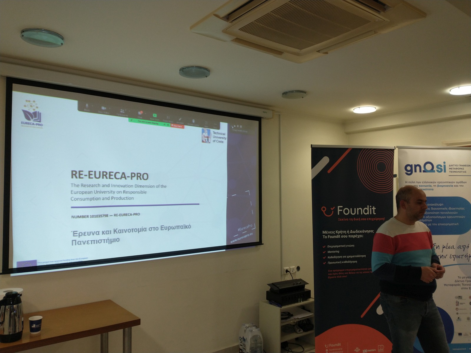 For RE-EURECA-PRO will be an opportunity for the participants of the workshop to locate possible sources of ideas in Technical University of Crete, regarding business ideas and solutions connected to responsible production and consumption.