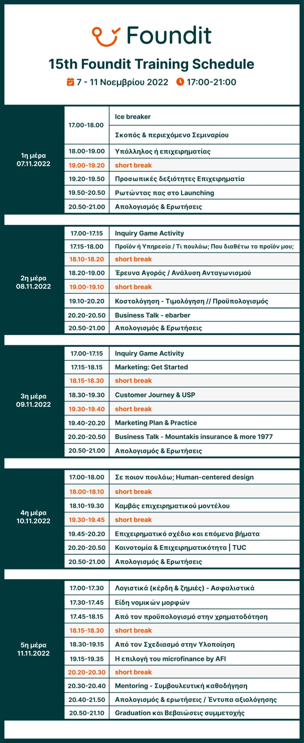 “Foundit” is a free entrepreneurship  program, mainly in Greek, with the purpose to assist young people in transforming a business idea into a product, service, business.